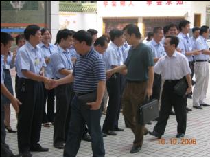 2006年10月10日9:20,著裝整齊的學校師生夾道熱烈歡迎自治區考核評估小組到我校現場檢查創(chuàng)建自治區級文明單位的具體工作。