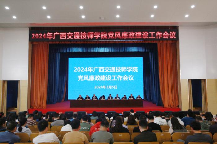 3月5日, 2024年廣西交(jiāo)通技師學院黨風廉政(zhèng)建設工作(zuò)會議(yì)在邕武校區大禮(lǐ)堂召開,總(zǒng)結2023年學院的黨風廉政建設(shè)工作情況,研究部署2024年的工作任務。自(zì)治區紀委監委駐自治區交通運輸廳紀檢監察組副組長黃(huáng)光瑞出(chū)席會議(yì)並講話。自治區交通(tōng)運輸廳(tīng)直屬(shǔ)機關黨委(wěi)副書記、機關紀委書記李勇斌出席會議。91.com(tōng)技師學院領導班子成員(yuán)及全體教職工參加會(huì)議。