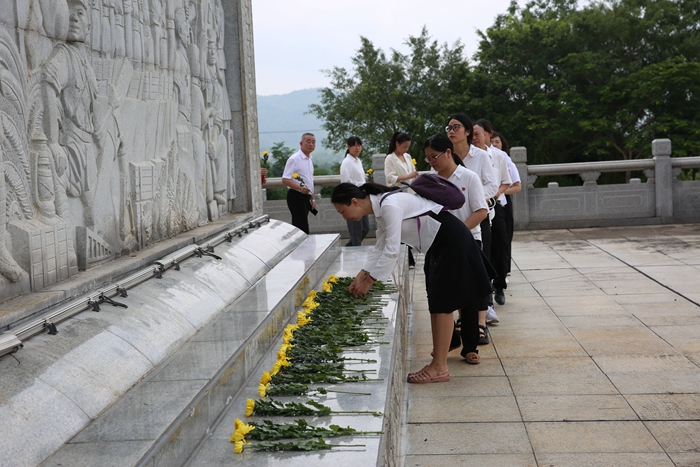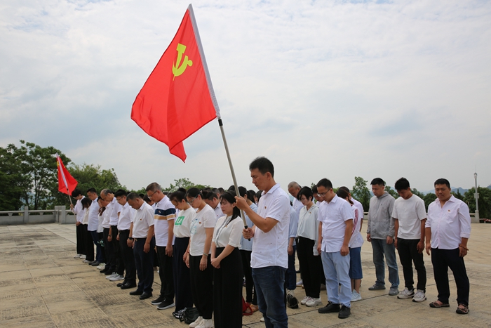 在龍州起義紀念碑,全體黨員(yuán)肅立在紀念碑前(qián),奏唱《中華人民共和國國歌》,並行默哀禮。默哀禮畢,全體黨(dǎng)員緩步走上前,依次(cì)向紀念碑獻花,瞻仰烈士紀念碑,緬懷革命先烈。