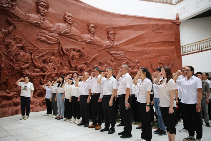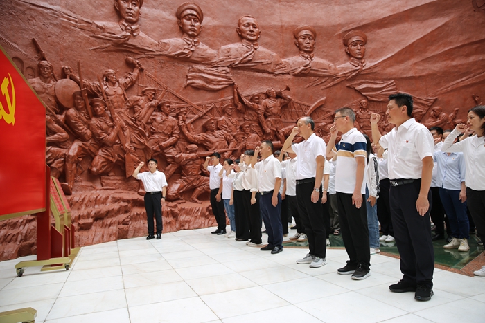 在龍州起義紀念館,黨員們麵向鮮紅的黨旗,重溫入黨誓詞。在講解員的引領(lǐng)下,黨(dǎng)員們認真聆聽“邊關風雲”“赤色龍州”“解放左江”“豐碑永存”四部分內容(róng)的講述,觀看珍貴曆史照片。