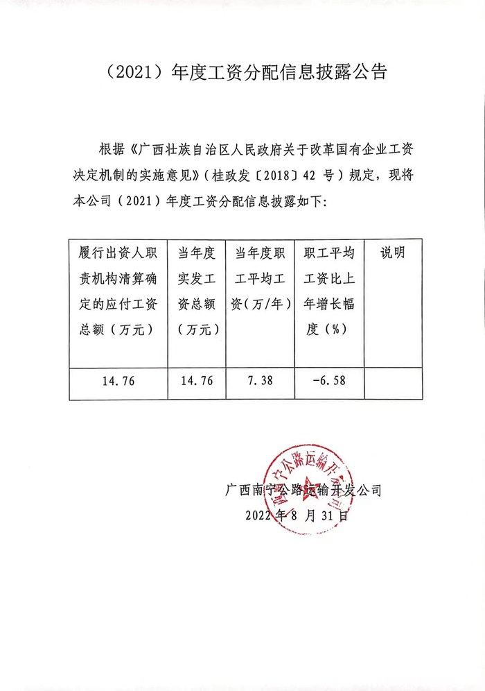 4.廣西(xī)南寧公路運輸(shū)開發公司2021年度工資分(fèn)配信息披露(lù)公告(gào)