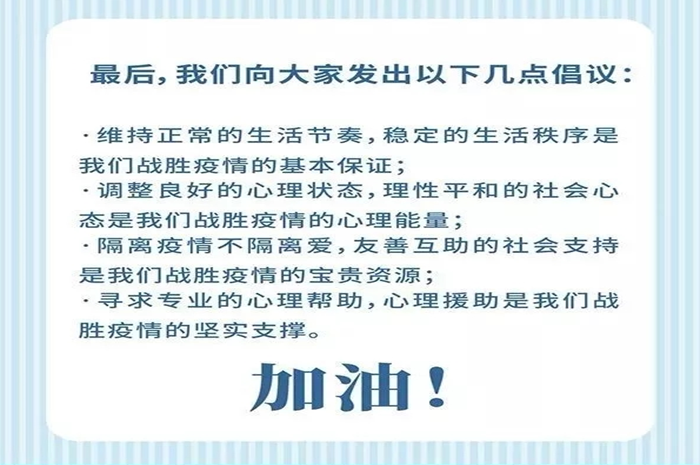 三、規律生活作息(xī),增強心理免疫:保持正常的作息,吃好三餐,多喝水,選擇合適的鍛煉方式,避免吸煙、熬(áo)夜(yè)遊戲(xì)等不利於健康的生活方式,保護和增強免疫力。有計劃做一些讓自己感到愉悅的事情,比如(rú)聽(tīng)音樂、看書,與家人、同學、老師或者朋友聊天等,保持健康良好的心理狀態。