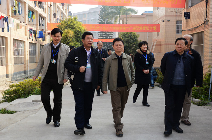 2013年12月31日(rì)上午,自治區交通運輸廳總工程師王劼耘、科教處處長岑春,自治區道路運輸管(guǎn)理局孫永生書(shū)記等一行深入(rù)我院高峰校區、伊嶺校區視察,詳細了解(jiě)兩(liǎng)個(gè)校區的(de)建設和學(xué)生的(de)學習(xí)生活(huó)情況。學院院長韋紅教,黨委書記羅華,副院(yuàn)長陸天雲、鍾修仁、關菲明,院(yuàn)長助理(lǐ)譚勁濤、鄭超文以及相關部門中層領導陪同視察。