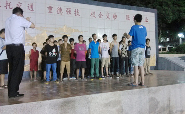 圖二(èr):同(tóng)學們利用(yòng)晚上的時間練習合唱