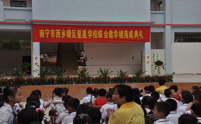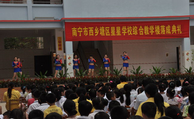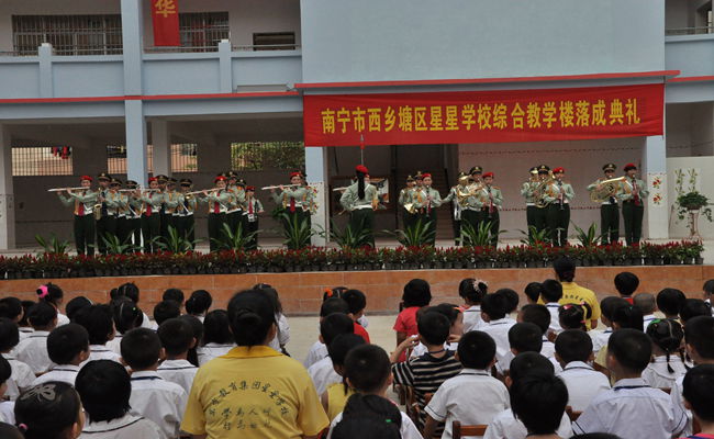 為了使我院與長期關愛的農民工子弟(dì)學校——南寧星星學校之間形成互動,同時(shí)為我們的(de)社團創造更(gèng)多展示的機會,5月15日上午(wǔ),我院管樂(lè)隊、啦(lā)啦操協會、音樂協會以及舞蹈協會的同學們,來到了星星學校參加該校綜合教學樓落成典禮。