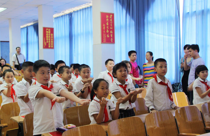 圖(tú)四:孩子們(men)現場複(fù)習車燈手勢(shì)