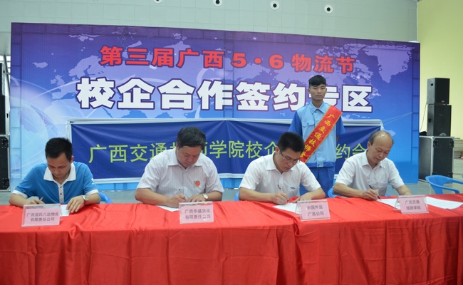 廣(guǎng)西“5·6”物流節是(shì)為了進一步倡(chàng)導物流行業文化,提升廣西物流軟實力,推進(jìn)政府與企業之間、高(gāo)校與企業之間、企業與企業之間(jiān)以及物流行業與相(xiàng)關行業之間的交流(liú)和合作而舉辦的。我院在此次物流節上積極與企業進行溝通和交流,並取得豐碩的成(chéng)果。成功與中國外(wài)運廣西公司、廣西中遠物流公司、廣西桂華物流有限公司、廣西翁氏八達物流有限責任公(gōng)司、廣西東興萬通(tōng)國際(jì)物流有(yǒu)限公司、南(nán)寧市華盛貨運有限責任(rèn)公司等六家廣(guǎng)西知名物流企(qǐ)業簽訂校(xiào)企合作協(xié)議書。