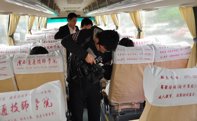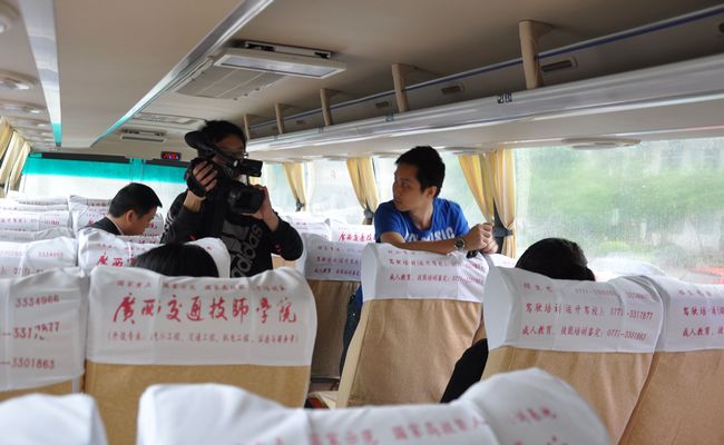 廣西電視台記者和(hé)我院駱任芳老師以(yǐ)體驗者的身份參與到了這次拍攝過程中,為了使體驗(yàn)感受更加真切,電視台記者係好安全帶,駱任芳老(lǎo)師特意不(bú)係安全帶,客車司機則模擬(nǐ)車輛在行(háng)駛時遇到的各種複雜路況進行急刹、急速轉彎等各種突發性駕駛,讓人始料不及(jí)的是,駱任芳老(lǎo)師不(bú)但(dàn)多次碰撞前座的靠背,而且膝蓋也撞到了前座坐墊下的鐵杠,甚至整個人跌出了走道;而廣西電視台體驗(yàn)記者則坐得穩穩當當,安(ān)然無恙。模擬(nǐ)體驗結(jié)束(shù)後,記者問及駱任芳老(lǎo)師對這次體(tǐ)驗活(huó)動的感受,她說:“這次乘車雖然是模(mó)擬體驗,但真的讓人很緊(jǐn)張,多次出現的碰撞以(yǐ)及跌出(chū)走道讓我真正意識到,乘(chéng)車過程中存在著很多潛在的危險,我們要防患於未然才能避免這些事故的發生,所以乘(chéng)車係安全帶真的很重要。”