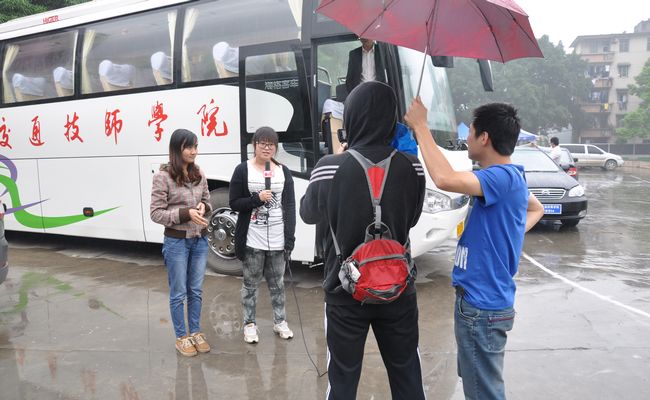 圖五:電視台記(jì)者采訪我院駱任芳老(lǎo)師對此次體驗活動的感受