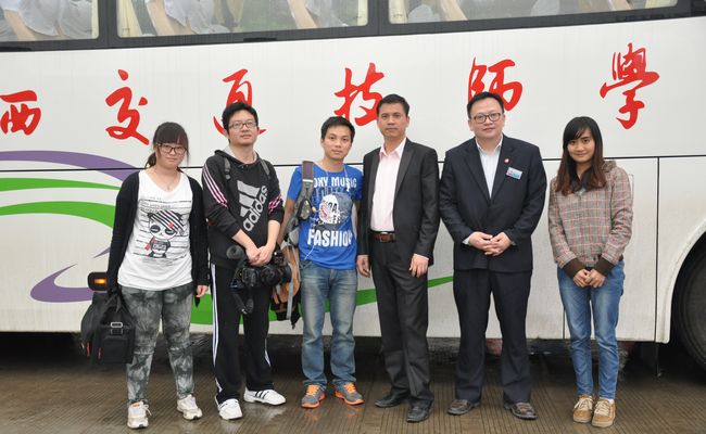 圖七:我院安全節能文明駕駛公(gōng)益學校(xiào)特色項目負責人李毅、羅聲儉等有關人員與廣西電視台拍攝組合影(yǐng)