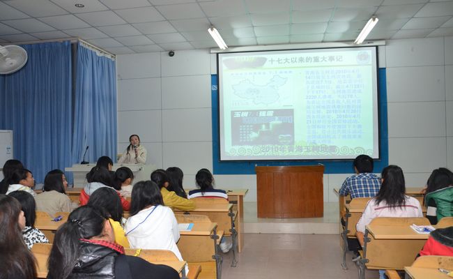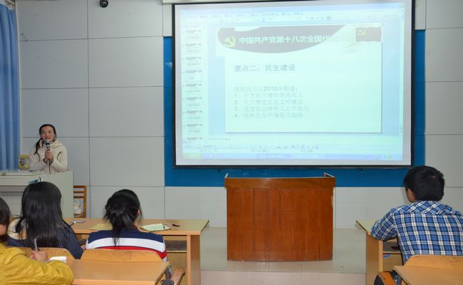 圖四:團委宣傳委員(yuán)徐文芽老師組織全體學員認真學習黨的十(shí)八大的相關知識(shí)