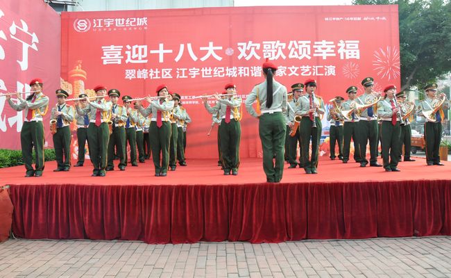 11月(yuè)10日上(shàng)午, 應(yīng)翠峰(fēng)社區邀(yāo)請,學院團委(wěi)組織管樂隊(duì)、啦啦操協會和音樂協會參加了由翠峰社區,江宇世紀城主辦的“喜(xǐ)迎十八大,歡歌頌幸福”文藝匯演,受到社區居民(mín)和(hé)觀眾(zhòng)的熱烈歡迎。
