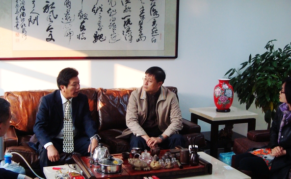 圖五(wǔ):鍾副院長(zhǎng)與北京市通州物流基地的英絡物流(中國)有限公司徐建華總經理就企業需求人才(cái)等方麵進行洽談