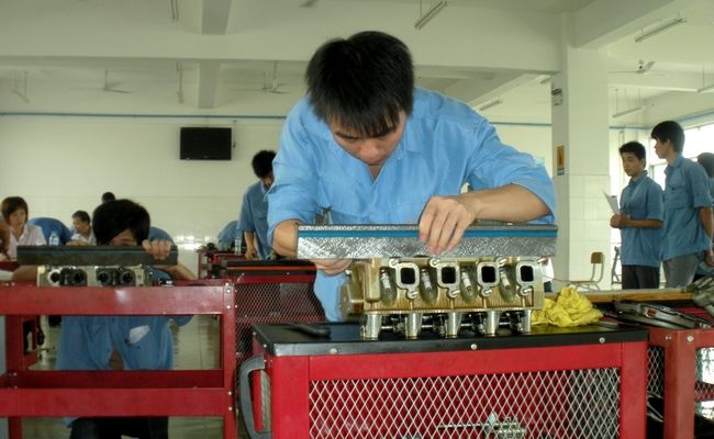 圖二:發動機氣缸蓋(gài)的檢測操作考試現(xiàn)場