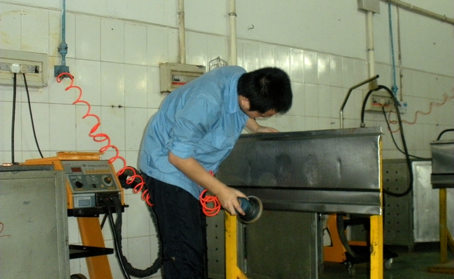 圖四(sì):學生正在進行鈑件(jiàn)凹陷修(xiū)複操作考(kǎo)試