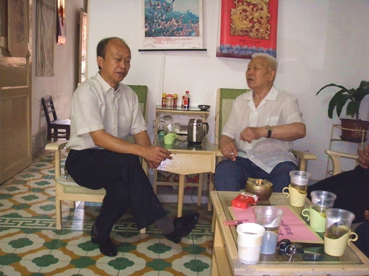 圖二:學校黨委書(shū)記羅華(左(zuǒ))與離退休(xiū)幹部詹春海(右)進(jìn)行親切交談。