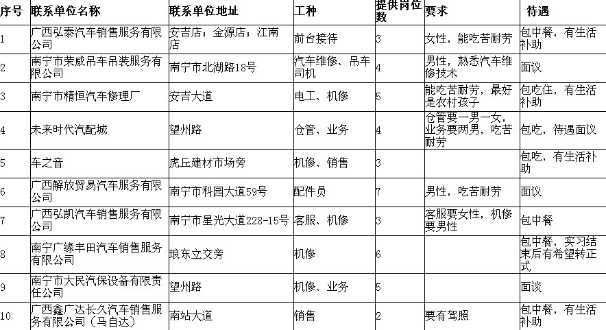 最新2010屆頂崗實習(xí)用工單位招聘信息(xī)一(yī)覽表