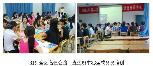 2008年4月至6月承擔全(quán)區高速公路客運、直達班車客運(yùn)乘務員培訓10期總人數(shù)400多人(rén);2009年4月至5月承擔高(gāo)速公路客(kè)運(yùn)、直達班車(chē)客(kè)運乘務員培訓5期,總計人數(shù)180多人。(見圖3)