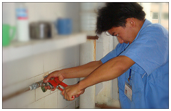 圖二 勤工儉學學生在(zài)維(wéi)修水龍頭